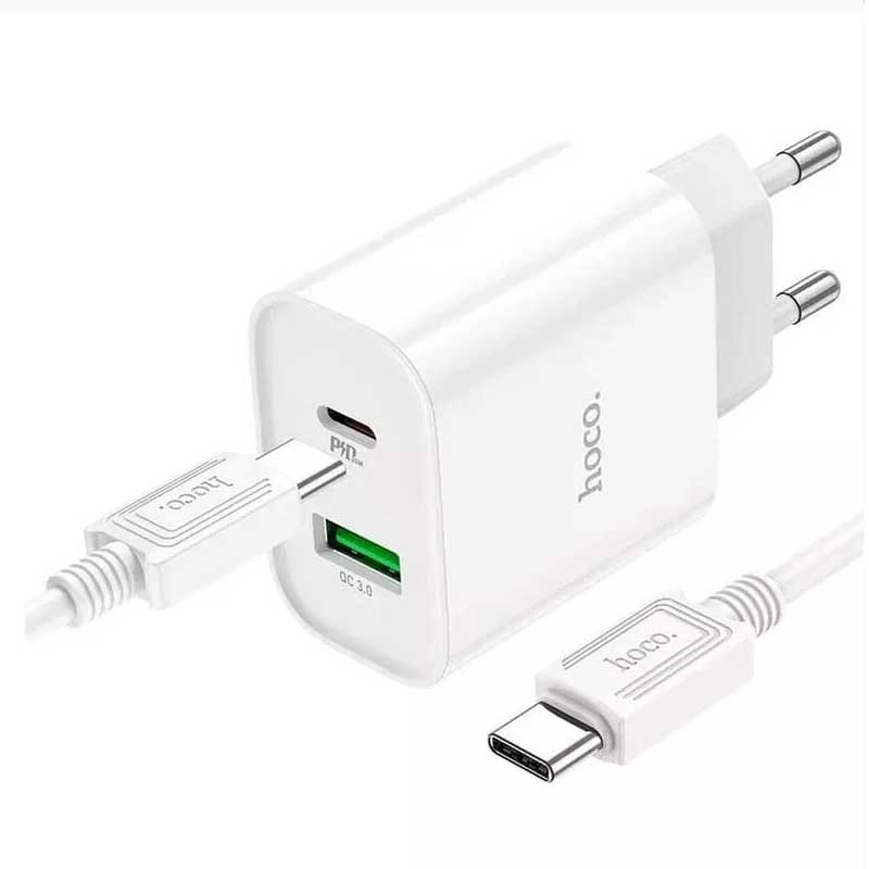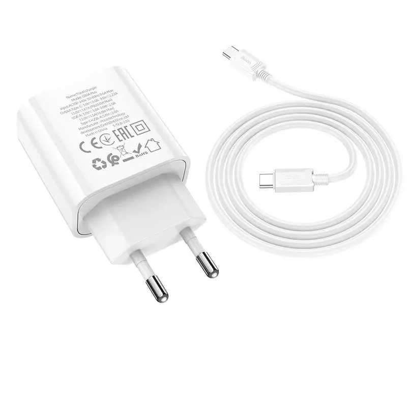 Купить Зарядное устройство Hoco C80A Plus PD20W + QC 3.0 + кабель Type-C White Hoco DM-00006945 по лучшей цене с доставкой - интернет магазин №1 в России